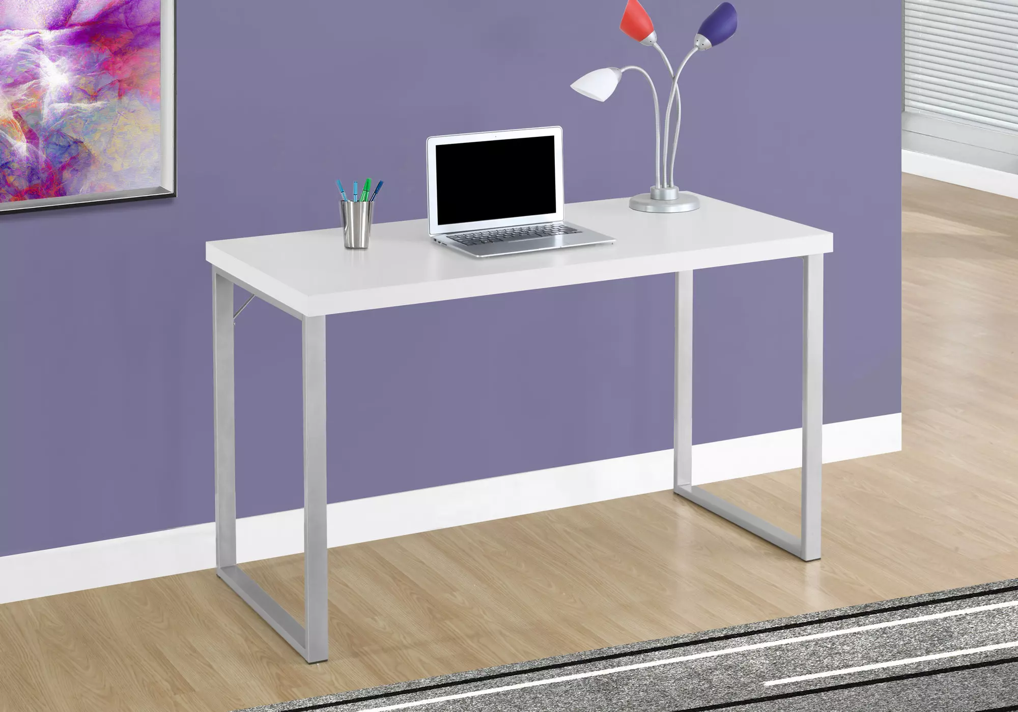 computer desk - 48 l - white - silver metal by monarch specialties (I7154)