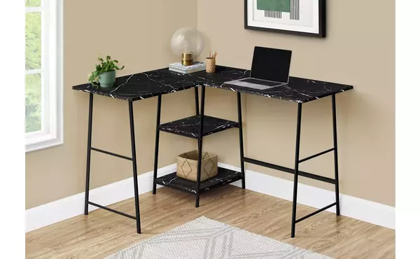 computer desk - 48 l - black marble - black metal corner by monarch specialties (I7594)
