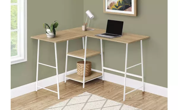computer desk - 48 l - natural top - white metal corner by monarch specialties (I7597)