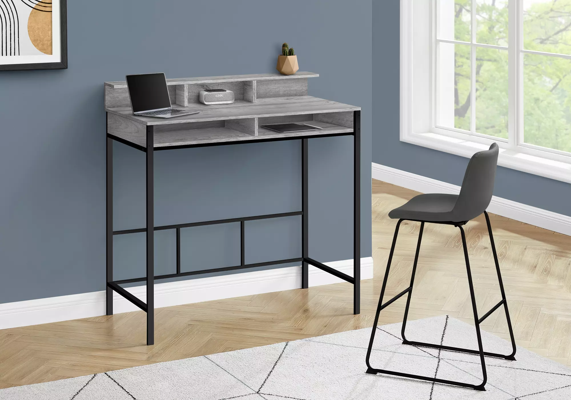 computer desk - 48 l - grey - black standing height by monarch specialties (I7703)