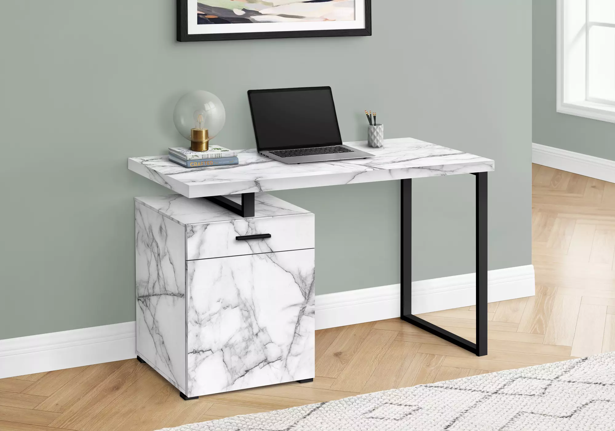 computer desk - 48 l - white marble left or right facing by monarch specialties (I7762)