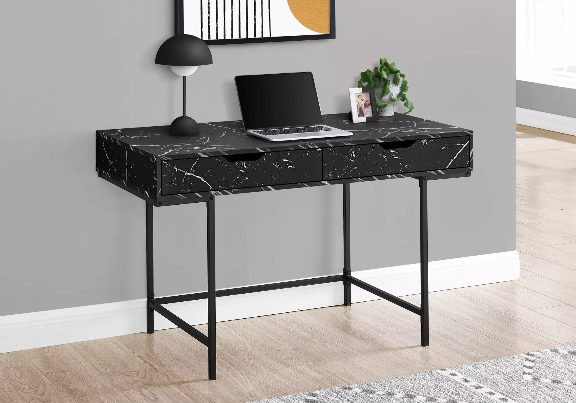 computer desk - 48 l - black marble-look - black metal by monarch specialties