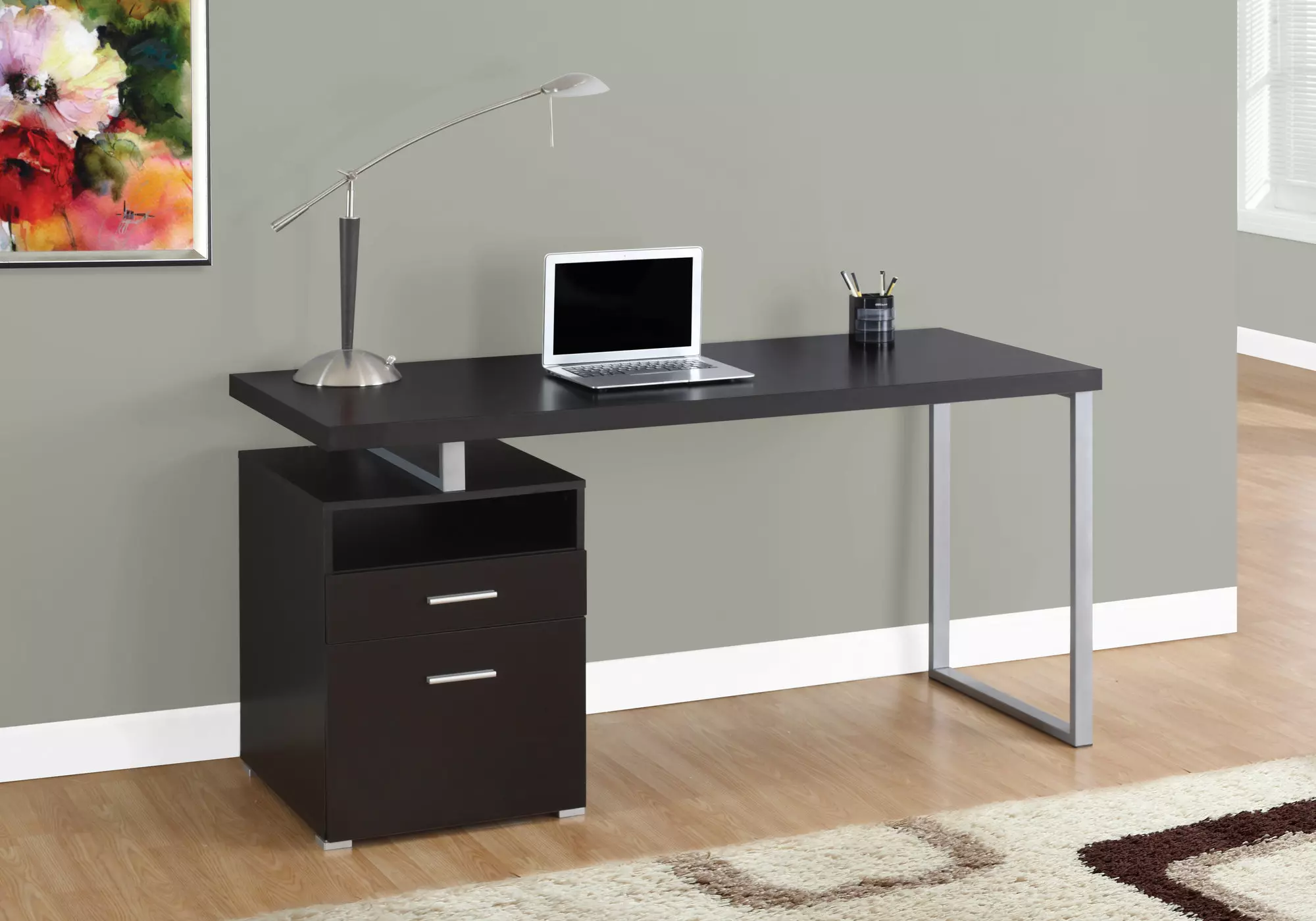 computer desk - 60 l - espresso - silver metal by monarch specialties