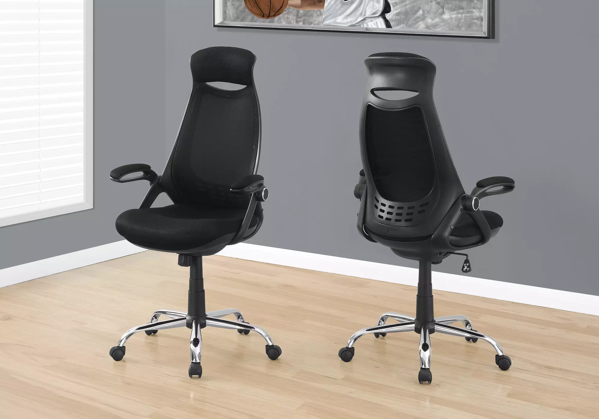 office chair - black mesh - chrome high-back executive by monarch specialties