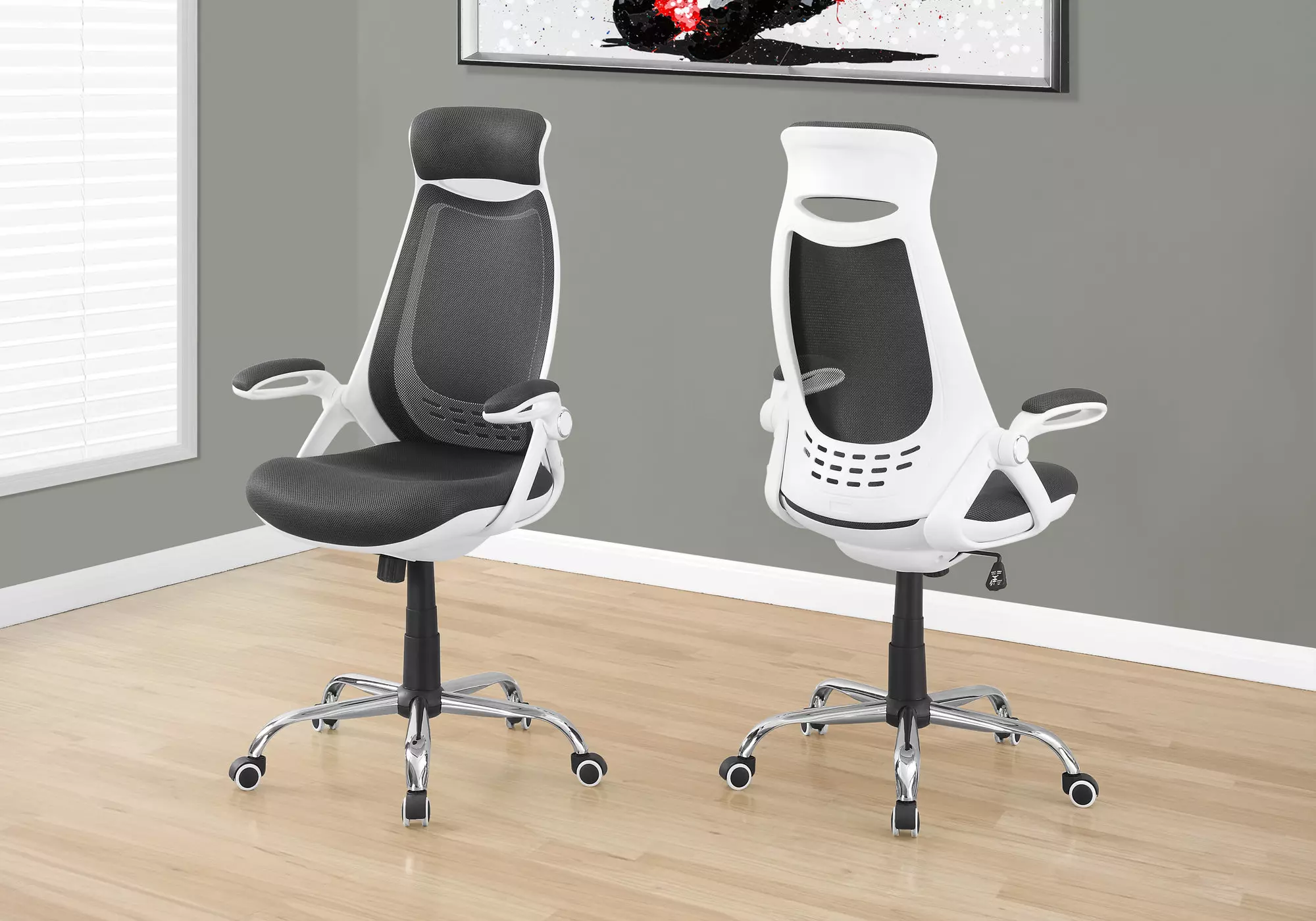 office chair - white - grey mesh - chrome high-back exec by monarch specialties