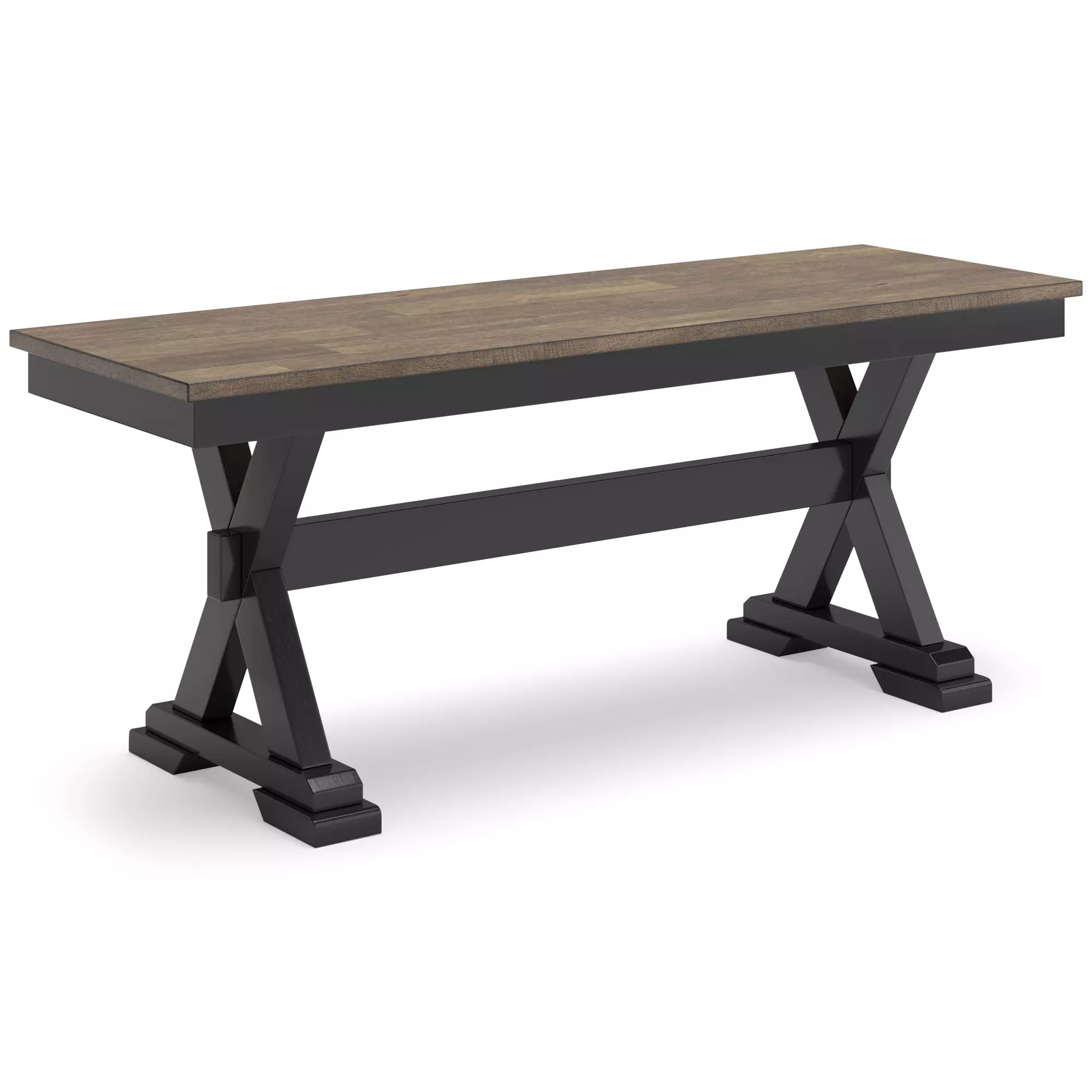 DescriptionRaise the bar on modern farmhouse style with this dining bench. Its casual good looks are accentuated with a handsome two-tone finish. A sturdy silhouette adds a hearty element, whether your style is vintage, country or eclectic. This richly crafted seating option serves up charm wherever folks decide to take a seat.