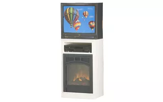 EAGLE 52739 50 CORNER ENTERTAINMENT CONSOLE WITH FIREPLACE, (CORNER OUT 35 1 2), OPEN STORAGE ABOVE FIREPLACE, 2 FIXED SHELVES FOR SIDE STORAGE, PLAIN BASE*GLASS*NG*FINSISH*BK, CC, CO, CM, CR, EC, GO, HG, IV, SW, UN, WH
