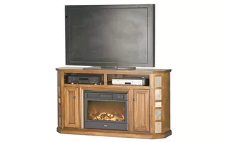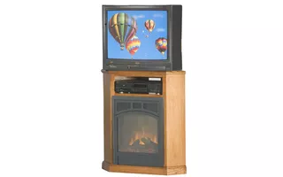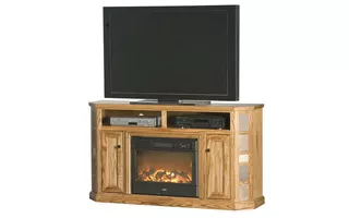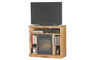 EAGLE 53724 32 CORNER ENTERTAINMENT CONSOLE WITH FIREPLACE, (CORNER OUT 22 3 4), OPEN STORAGE ABOVE FIREPLACE, TILED SIDES, PLAIN BASE*GLASS*NG*FINSISH*CC, DK, LT, MD, SO, UN, CR, CM