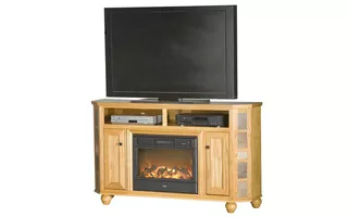 EAGLE 53553 54 ENTERTAINMENT CONSOLE WITH FIREPLACE, OPEN STORAGE ABOVE FIREPLACE, 2 BEAD BOARD DOORS, PLAIN BASE*GLASS*NG*FINSISH*CC, DK, LT, MD, SO, UN, CR, CM