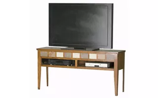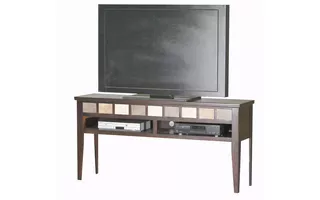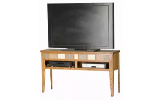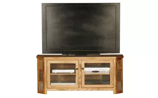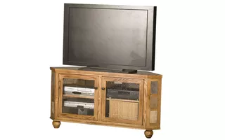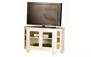 EAGLE 63743 45 CORNER ENTERTAINMENT CONSOLE, (CORNER OUT 32), 2 GLASS DOORS, 1 FIXED WOOD SHELF, TILE ACCENTS, BUN FOOT BASE*GLASS*PL, SD*FINSISH*CC, DK, LT, MD, SO, UN, CR, CM