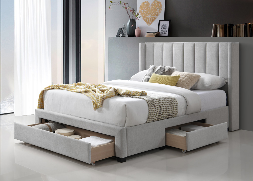 Description: KING STORAGE BED - LIGHT GREY (NO BOX SPRING REQUIRED)