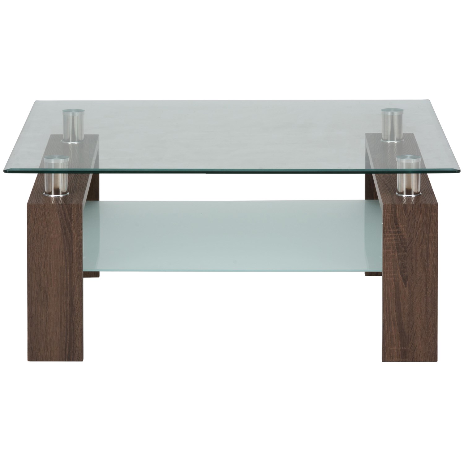 Description: GLASS, WOOD, AND CHROME SQUARE COFFEE TABLE BASE COMPASS FINISH