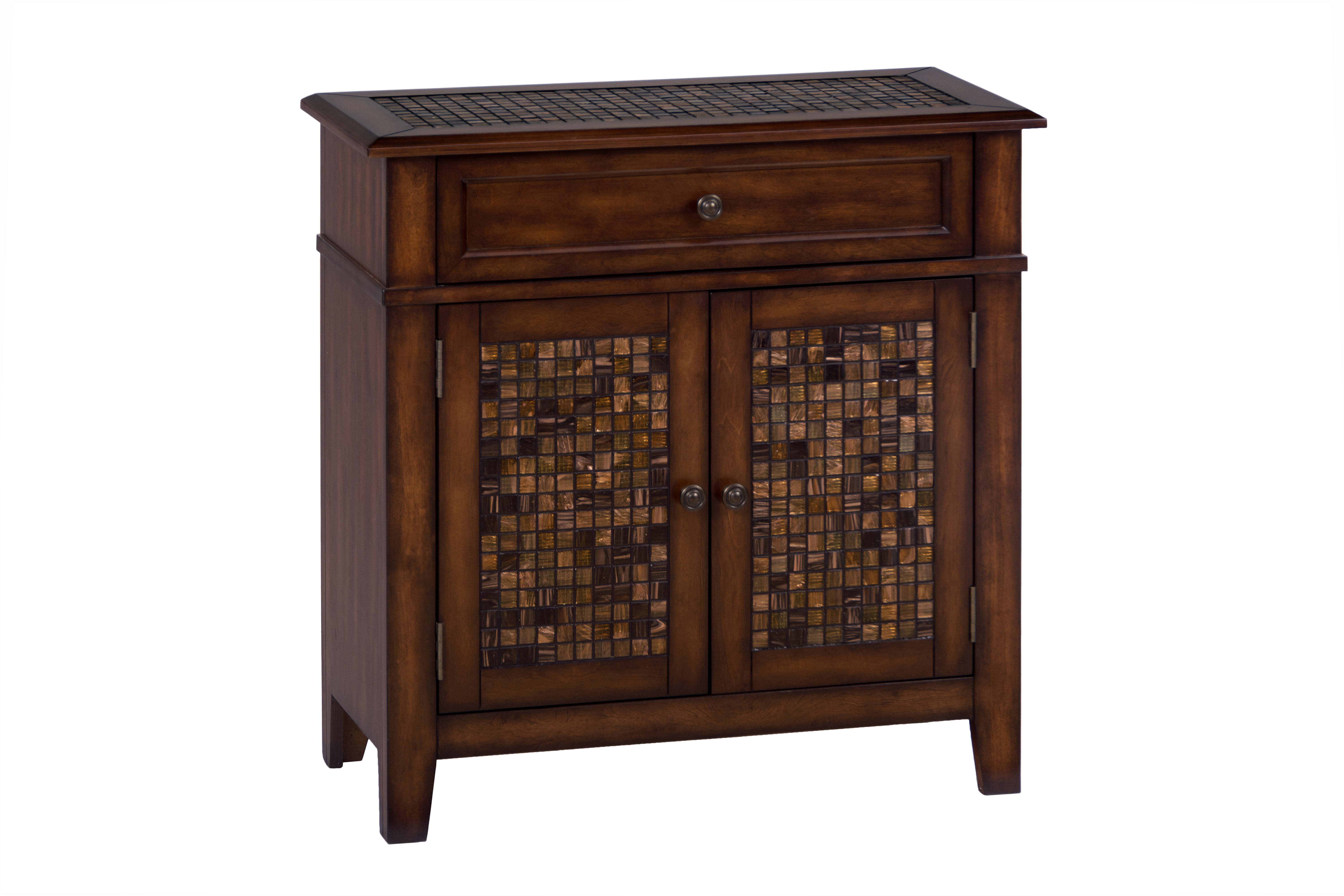 Description: ACCENT CABINET W/2 DOORS,DRAWER; MOSAIC TILE INLAY ON TOP AND FRONT BAROQUE COLLECTION