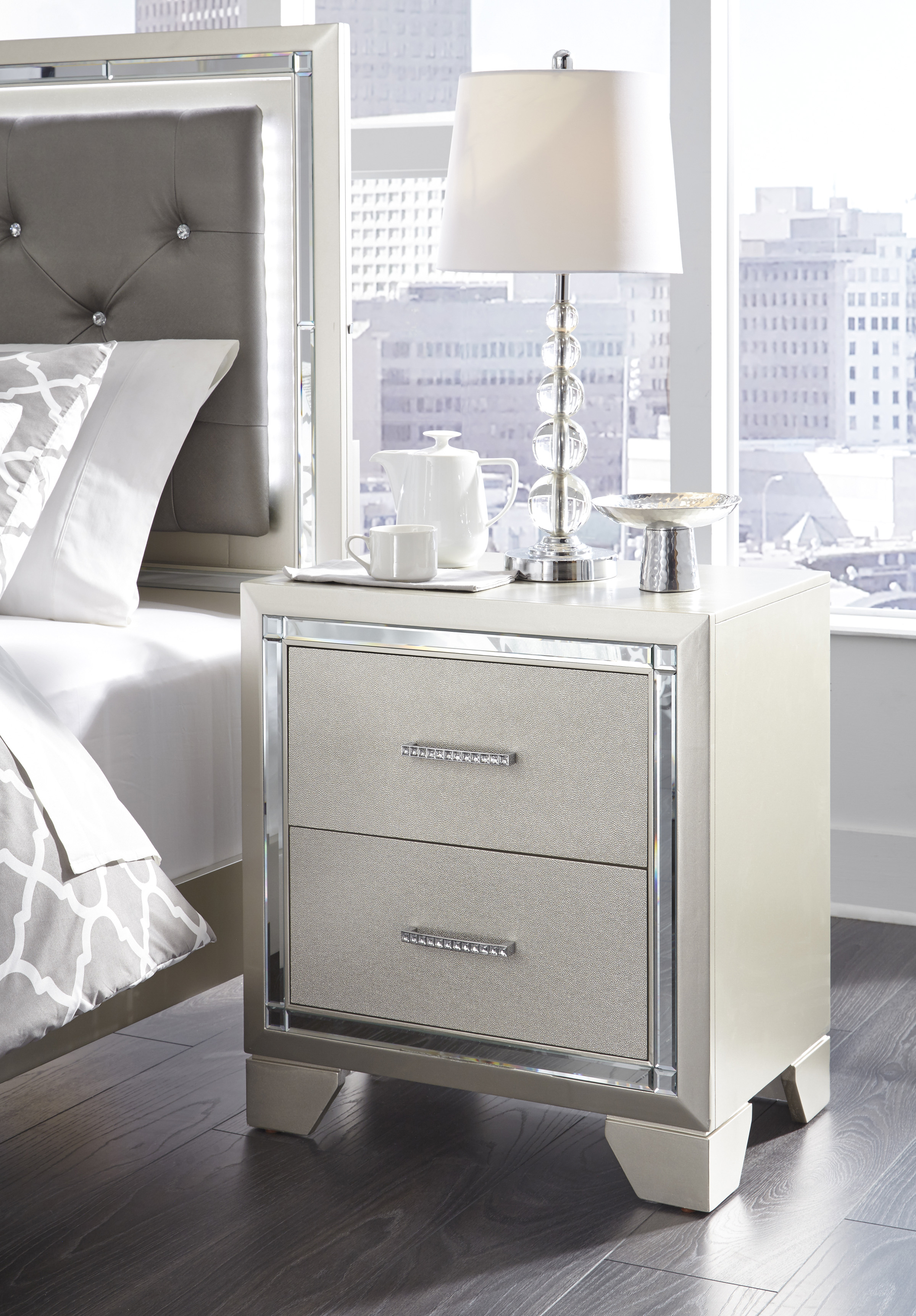Lonnix TWO DRAWER NIGHT STAND ASHLEY FURNITURE Silver Finish B410-92