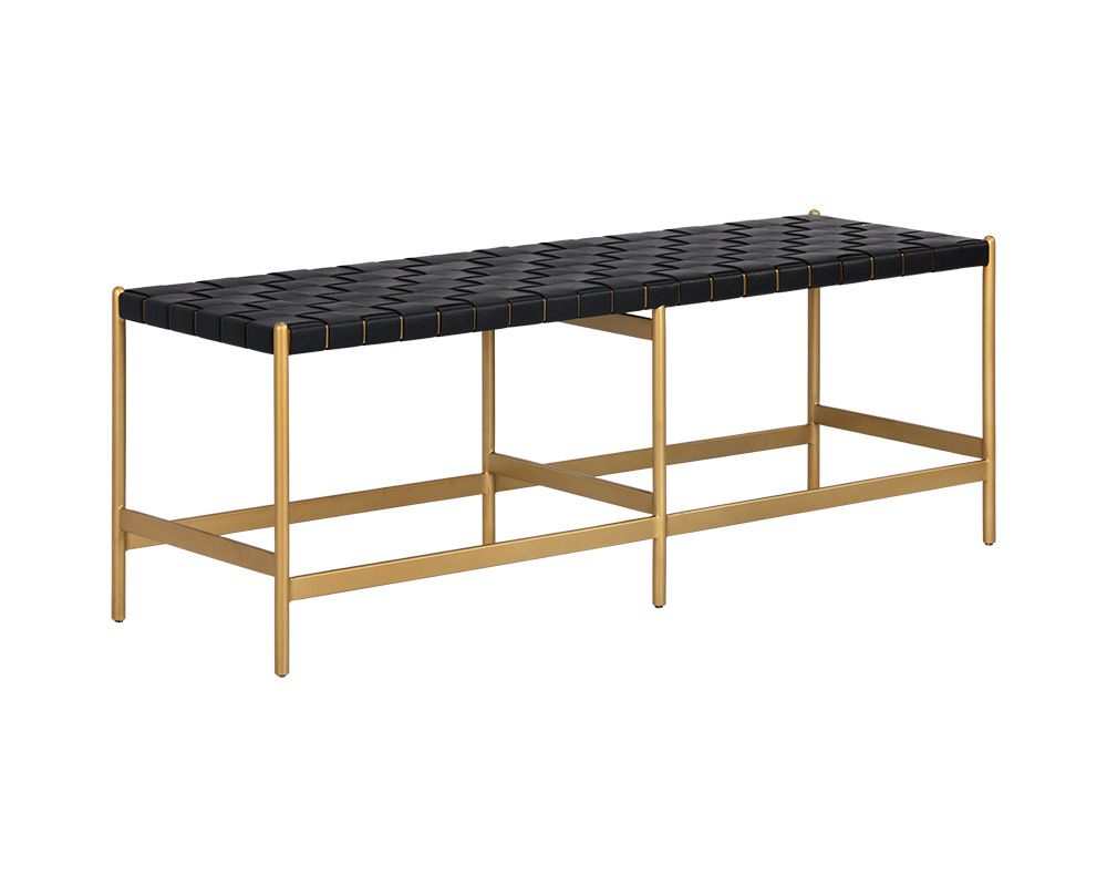Description: OMARI BENCH - GOLD - BLACK LEATHER