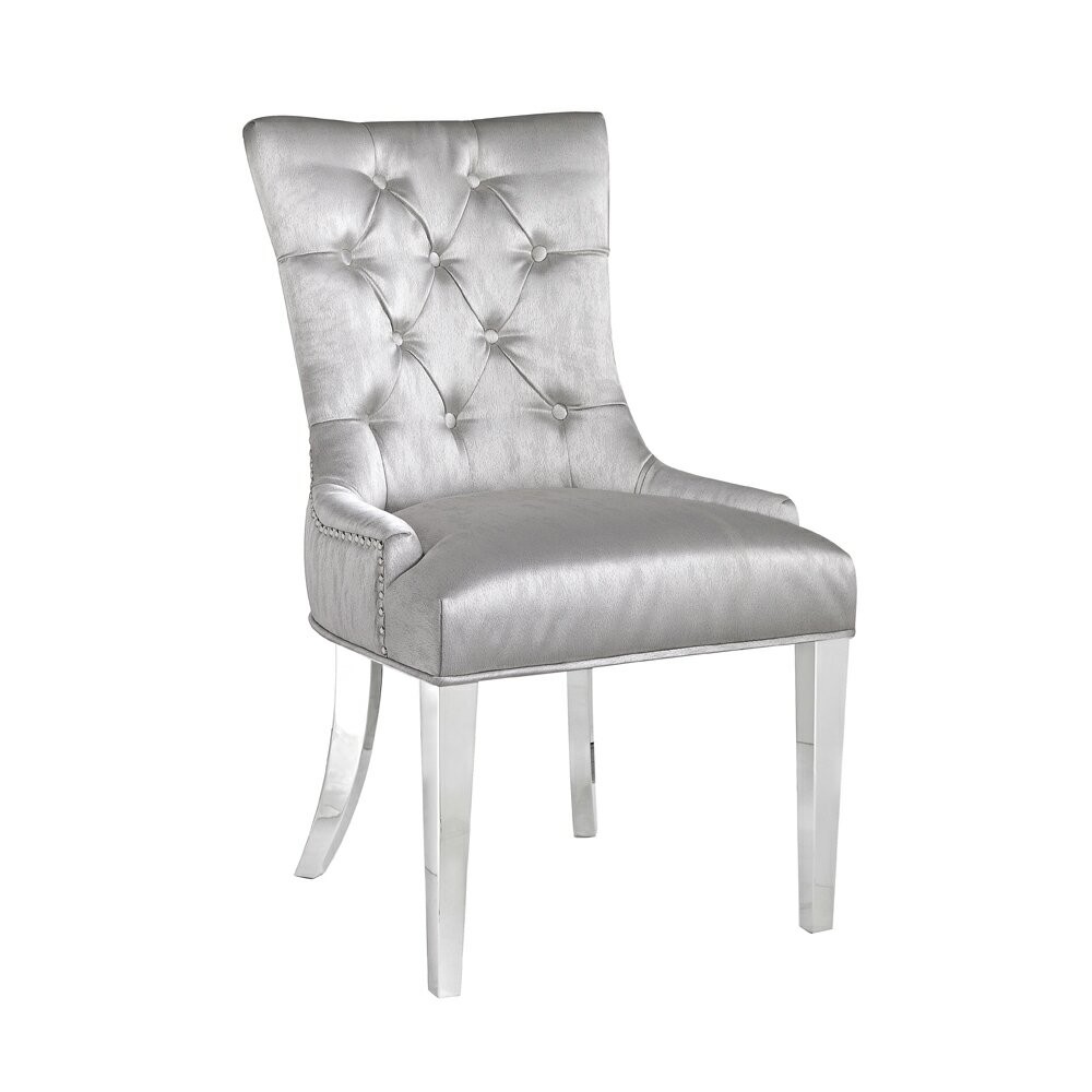 Description: KIMBERLY CHAIR GY-DC-7900SS STEEL LEG SILVER SATIN FABR