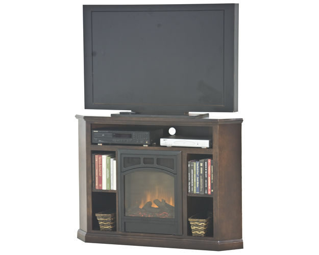 Description: 50 CORNER ENTERTAINMENT CONSOLE WITH FIREPLACE, (CORNER OUT 35 1 2), OPEN STORAGE ABOVE FIREPLACE, 2 FIXED SHELVES FOR SIDE STORAGE, PLAIN BASE*GLASS*NG*FINSISH*BK, CC, CO, CM, CR, EC, GO, HG, IV, SW, UN, WH