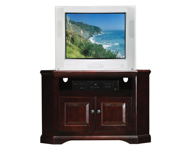 Description: 41 CORNER ENTERTAINMENT CONSOLE, (CORNER OUT 30), 2 RAISED PANEL DOORS, DECORATIVE MOLDING, PLAIN BASE*GLASS*NG*FINSISH*CC, CM, CO, CR, EC, GO, HG, IV, UN