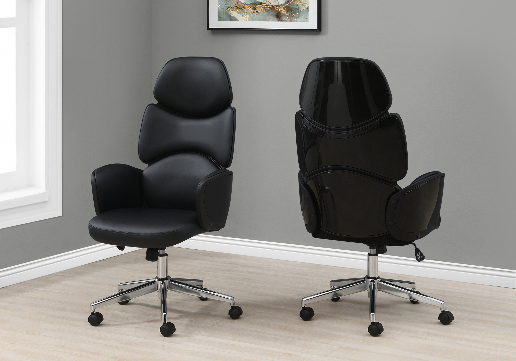 I7321 OFFICE CHAIR - BLACK LEATHER-LOOK / HIGH BACK EXECUTIVE MONARCH SPECIALTIES  I7321