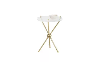 ACCENT TABLE - CHERRY TOP / ANTIQUE WHITE METAL
