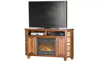 EAGLE 53553 54 ENTERTAINMENT CONSOLE WITH FIREPLACE, OPEN STORAGE ABOVE FIREPLACE, 2 BEAD BOARD DOORS, PLAIN BASE*GLASS*NG*FINSISH*CC, DK, LT, MD, SO, UN, CR, CM