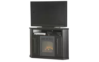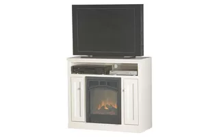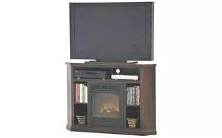 EAGLE 52739 50 CORNER ENTERTAINMENT CONSOLE WITH FIREPLACE, (CORNER OUT 35 1 2), OPEN STORAGE ABOVE FIREPLACE, 2 FIXED SHELVES FOR SIDE STORAGE, PLAIN BASE*GLASS*NG*FINSISH*BK, CC, CO, CM, CR, EC, GO, HG, IV, SW, UN, WH