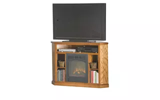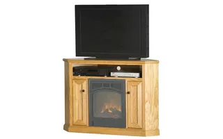 EAGLE 53724 32 CORNER ENTERTAINMENT CONSOLE WITH FIREPLACE, (CORNER OUT 22 3 4), OPEN STORAGE ABOVE FIREPLACE, TILED SIDES, PLAIN BASE*GLASS*NG*FINSISH*CC, DK, LT, MD, SO, UN, CR, CM