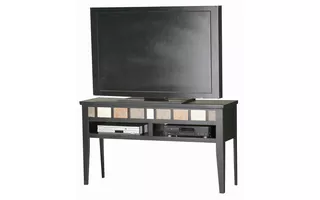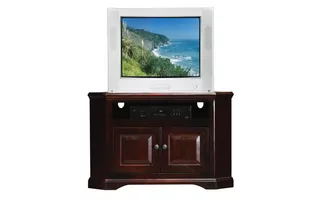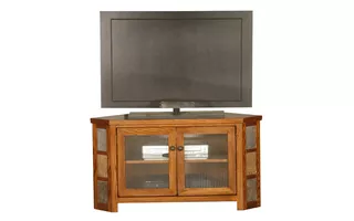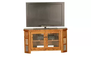 EAGLE 63743 45 CORNER ENTERTAINMENT CONSOLE, (CORNER OUT 32), 2 GLASS DOORS, 1 FIXED WOOD SHELF, TILE ACCENTS, BUN FOOT BASE*GLASS*PL, SD*FINSISH*CC, DK, LT, MD, SO, UN, CR, CM