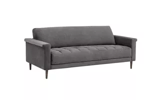 CODY MODERN AND CONTEMPORARY TUFTED OTTOMAN IN GRAY VELVET WITH ACRYLIC LEGS