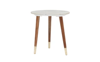 ELLY END TABLE BRASS INLAY MARBLE TOP ET WITH SOLID WOOD BASE AND BRASS CAPS XC-52978